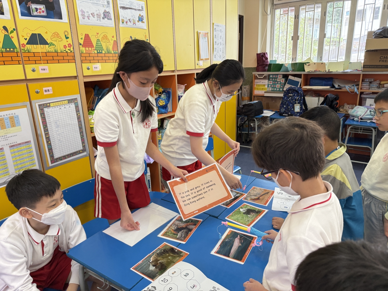 除指定英文教科書及網上學習平台外,學校更安排同學閱讀大量不同體裁的故事書,並提供機會給同學用英語於中央廣播時段進行分享。